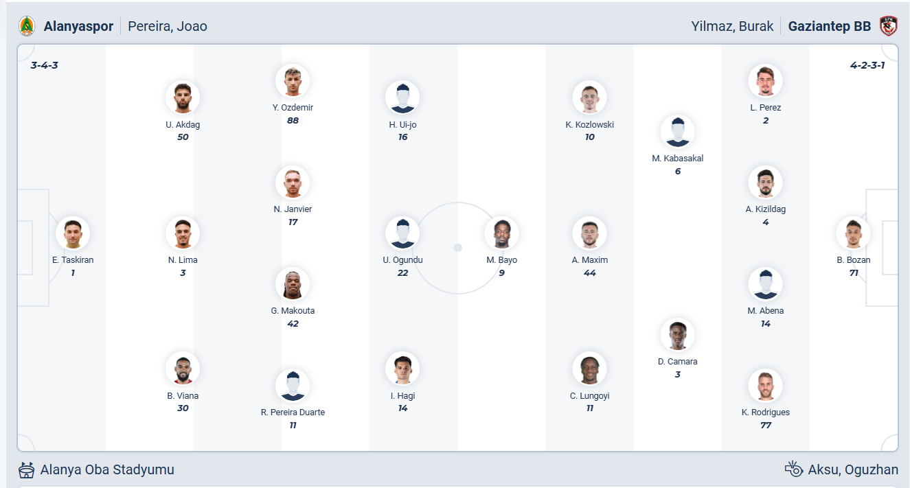 Alanyaspor không phải đội bóng mạnh của Thổ Nhĩ Kỳ, họ chỉ đứng thứ 12 mùa giải trước. Mùa giải năm nay dù đang đứng thứ 10, vị trí nhỉnh hơn nhưng phong độ của các cầu thủ Alanyaspor không tốt chút nào khi chỉ thắng 1 trong 5 vòng gần nhất. Điều thầy trò HLV João Pereira cần làm vào lúc này là phải giành chiến thắng nếu không muốn tụt xuống vị trí sâu hơn nữa trên bảng xếp hạng. Gaziantep không phải đối thủ quá khó chơi và nhiều khả năng Alanyaspor sẽ tận dụng tốt lợi thế sân nhà để có 3 điểm trận này.