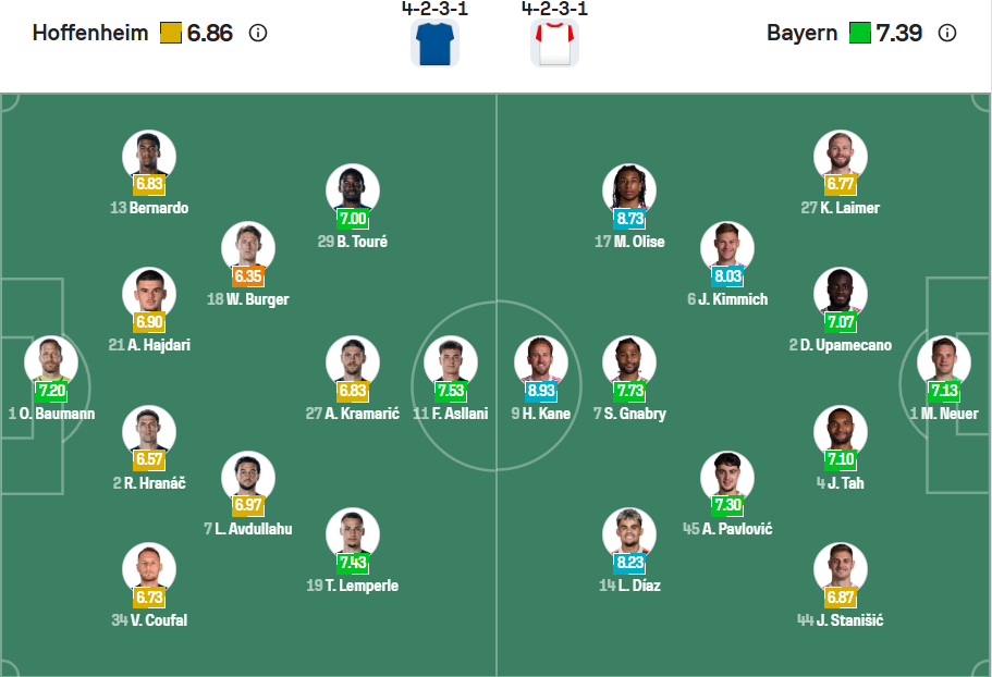 Bayern đương nhiên là đội bóng có chất lượng đội hình mạnh nhất tại Bundesliga, họ vượt trội so với phần còn lại nên việc thầy trò HLV Vincent Kompany đang đứng đầu bảng là điều được dự đoán từ trước, các cầu thủ Bayern muốn thắng mọi trận đấu của mình để tiếp tục giành chức vô địch nên đương nhiên họ cần 3 điểm ở vòng đấu thứ tư này khi đến làm khách trên sân của Hoffenheim. Với chất lượng đội hình vượt trội thì sẽ không có gì ngạc nhiên nếu các cầu thủ khách chơi áp đảo và ra về với chiến thắng cách biệt.