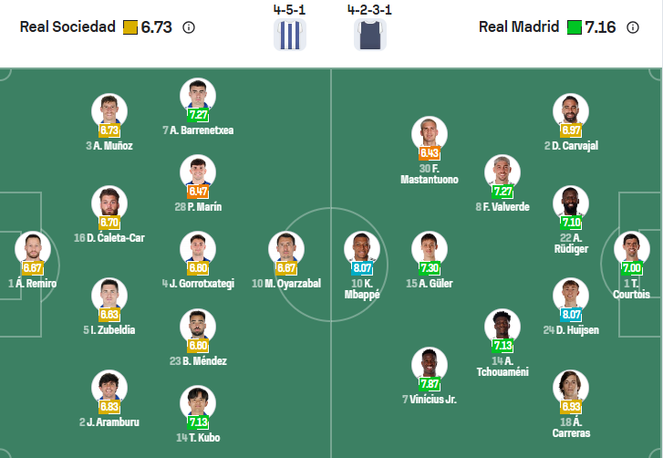 Real Madrid vừa trải qua một mùa giải đáng thất vọng, họ quyết tâm làm tốt hơn ở mùa giải này khi bổ nhiệm HLV Xabi Alonso cùng những phương án nhân sự mới. Các cầu thủ Real Madrid đã khởi đầu mùa giải rất ổn khi thắng cả 3 vòng đấu đầu tiên và họ muốn tiếp tục làm điều tương tự ở vòng đấu thứ tư, qua đó duy trì vị trí đầu bảng của mình. Đến làm khách trên sân của đội bóng không mạnh như Sociedad không phải thử tháchc quá khó khăn với Real Madrid và nhiều khả năng họ sẽ có được điều mình cần.