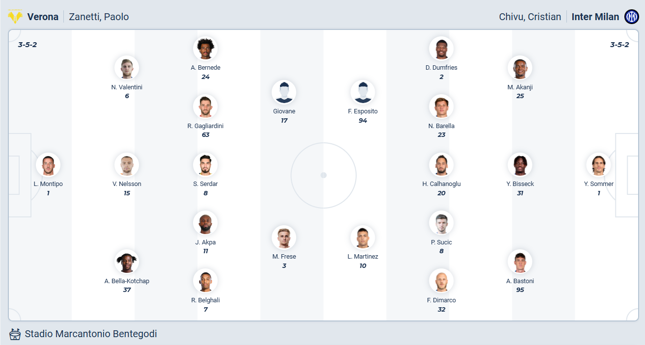 Vòng 10 Serie A, Verona sẽ tiếp Inter trên sân nhà với mục tiêu giành điểm để hy vọng thoát ra khỏi nhóm cuối bảng. Tuy nhiên trước đối thủ mạnh hơn nhiều như Inter thì xem ra mục tiêu đó khó thành hiện thực.