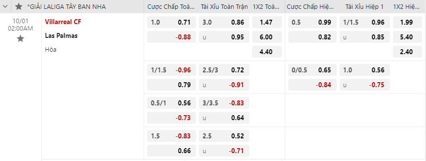 Soi kèo hiệp 1 Villarreal vs Las Palmas